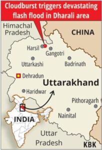 • Uttarkashi’s rugged topography, ranging from 800 to 6,900 metres, features steep slopes, valleys, and glacial deposits. The region’s vulnerability to glacial lake outburst floods is a growing concern.