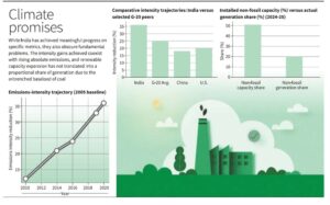 - Early Achievement: India reduced GDP emissions intensity by nearly 36% by 2020, meeting its 2030 Paris target a decade early through structural and policy shifts, including improved environmental clearance processes.
